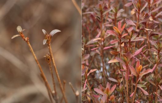 진달래(왼쪽)와 철쭉 겨울눈. |
