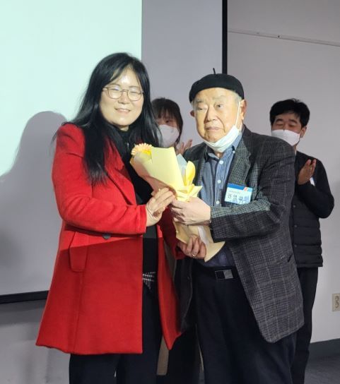 [서울=뉴시스] 왼쪽부터 한국만화가협회 제29대 회장 신일숙, 꽃다발 전달하는 권영섭 원로만화작가 (사진=(사)한국만화가협회 제공) 2023.02.21. photo@newsis.com *재판매 및 DB 금지 |