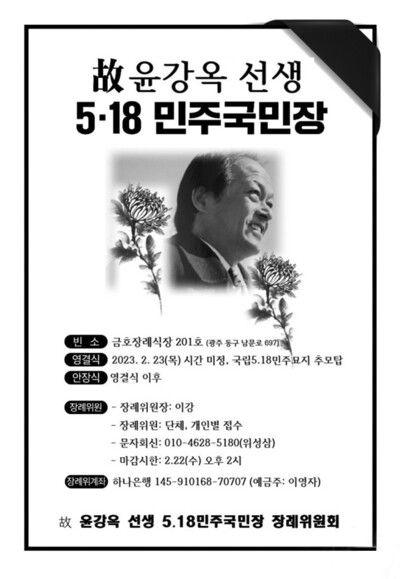장례는 5·18민주국민장으로 치러지며 광주전남민주화운동동지회 이강 고문이 장례위원장을 맡았다.