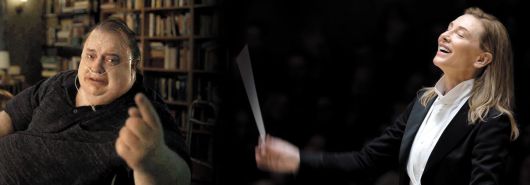 영화 ‘더 웨일’에서 272kg의 거구 찰리 역을 맡은 배우 브렌던 프레이저(왼쪽)와 ‘타르’에서 여성 지휘자 역을 열연한 케이트 블란쳇. 이미 세계 영화제에서 20여 차례씩 연기상을 거머쥐었고, 내달 아카데미 시상식에서도 남녀 주연상 영순위 후보로 꼽힌다. /그린나래미디어·유니버설 픽쳐스 |