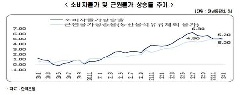 특히 올해 1월 근원물가 상승률(5.0%)은 글로벌 금융위기 당시인 2009년 2월(5.2%) 이후 13년 11개월 만에 최대치를 기록했다.