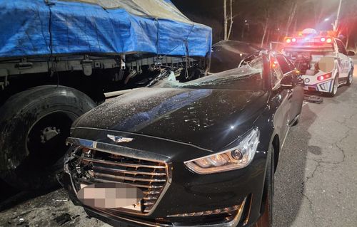 (청주=연합뉴스) 천경환 기자 = 22일 오후 10시 30분께 충북 청주시 청원구 오창읍의 한 도로에서 A(61)씨가 몰던 승용차가 갓길에 세워진 25t 화물차를 들이받았다.