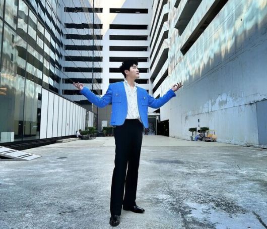 또 양손을 든채 높은 건물 앞에서 포즈를 취한 사진에서는 우월한 기럭지로 모델 포스를 자아내 눈길을 끈다.