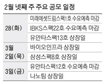 다음달 상장하는 바이오인프라 역시 앞서 진행한 일반청약에서 경쟁률 1034대1을 기록하며 흥행에 성공했다. 기관 수요예측에서 최종 공모가를 밴드 최상단인 2만1000원으로 확정했고 일반 청약증거금은 약 1조7655억원 수준으로 나타났다.