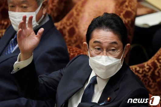 기시다 후미오 일본 총리가 22일 도쿄 의회에서 열린 참의원 예산위원회 회의에서 질문에 답변하기 위해 손을 든 모습 .23.02.22 ⓒ AFP=뉴스1 ⓒ News1 김예슬 기자 |
