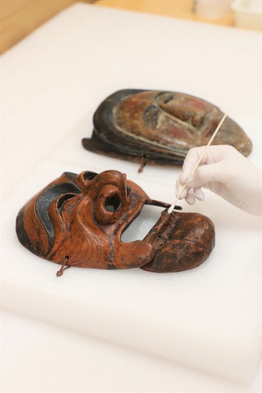 국립문화재연구원 문화재보존과학센터에서 하회탈을 세척하고 있다. 문화재청 제공 |