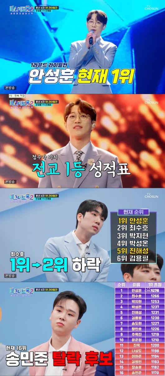 1라운드 순위는 1위 안성훈, 2위 최수호, 3위 박지현, 4위 박성온, 5위 진해성, 6위 김용필, 7위 송도현, 8위 황민호, 9위 추혁진, 10위 윤준협이었다.