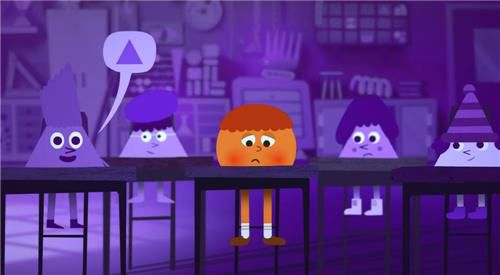 보라색 캐릭터들의 학교에 도착한 주황색 캐릭터는 삼각형의 언어와 음식을 마주하며 자신이 이곳에 어울리지 않는다고 생각하지만, 친구들과의 우정을 통해 점차 환영받는 느낌을 받는다.