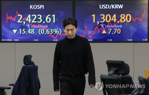 이날 코스피는 전장보다 15.48포인트(0.63%) 내린 2,423.61에 거래를 마쳤다.