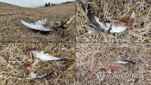 (제주=연합뉴스) 고성식 기자 = 제주 마라도로 날아왔다가 고양이의 사냥으로 죽은 것으로 보이는 천연기념물 뿔쇠오리 사체들이 발견됐다.