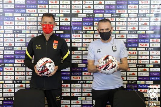 [사진] 알렉산다르 얀코비치 감독(좌)과 파울루 벤투 감독(우) / 대한축구협회 제공. |