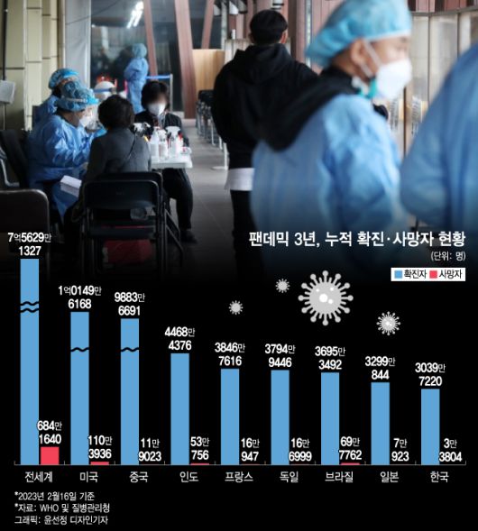 [머니투데이 안정준 기자] [편집자주] 2020년 1월 30일, 세계보건기구(WHO)가 코로나19에 대한 '국제 공중보건 비상사태'를 선언한지 3년이 지났다. 이제 전 세계를 괴롭힌 이 바이러스는 눈에 띄게 힘을 잃었다. WHO의 비상사태 종료 선언이 유력한 오는 4월은 팬데믹(대규모 유행)의 끝이자 엔데믹(감염병의 풍토병화)의 시작점이 될 가능성이 높다. 새 출발선에 섰지만 3년의 팬데믹은 국내에서만 3000만명 이상의 확진자와 3만명 이상의 사망자를 남겼다. 이 과정에서 방역정책과 백신·치료제 개발의 시행착오가 발생했다. 진단키트를 중심으로 팬데믹에서 기회를 잡은 바이오산업은 새 성장동력을 찾아야 한다. 엔데믹의 시작은 보건·의료·산업 전반의 '리셋'이기도 한 셈이다. 팬데믹 3년의 명암을 짚어보고 엔데믹의 미래를 내다본다.