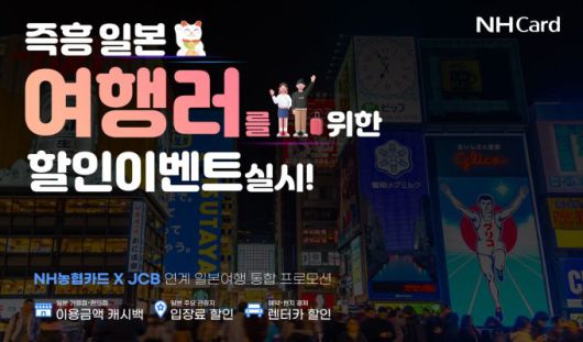 이번 프로모션은 NH농협 JCB 개인카드(채움) 이용 고객을 대상으로 공항서비스부터 일본 내 전 가맹점·관광지·렌터카 등 일본여행 관련 영역에서 캐시백 및 즉시할인 혜택을 제공한다.