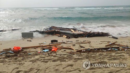 부서진 채 떠내려온 난민 선박 잔해 |