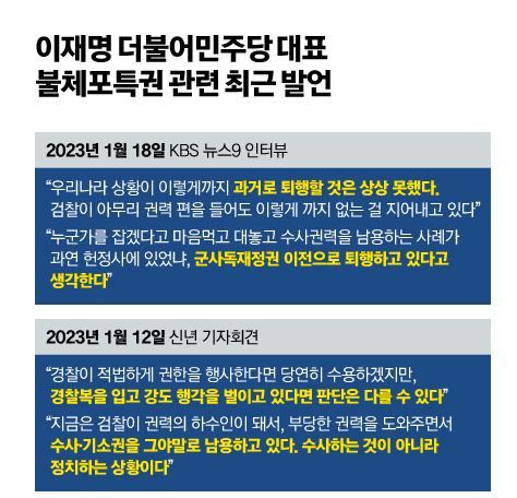 ■ 2023.02.22 이재명 “권력 장난…깡패지 대통령이냐” 여당 “선 넘은 막말” 이재명 더불어민주당 대표가 자신의 체포동의안이 국회에 송부된 다음 날인 22일 당 최고위원회의 마무리 발언에서 윤석열 대통령을 향해 “국가권력을 가지고 장난하면 그게 깡패지 대통령이겠냐”고 말했다. 여당이 당장 “정작 깡패와 어울려 대북 송금 의혹을 받는 장본인이 선 넘는 막말을 했다”며 반발하면서 파문을 일으켰다.