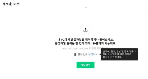 현재 클로바노트는 모바일 앱을 통해서 녹음을 할 수 있고, PC 웹에서는 녹음된 음성 파일을 첨부하면 텍스트로 변환해 주거나 기존 노트를 편집하는 등의 기능만 제공한다.
