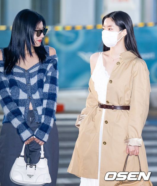 [OSEN=인천공항, 민경훈 기자] 그룹 트와이스(TWICE-나연, 정연, 모모, 사나, 지효, 미나, 다현, 채영, 쯔위)가 27일 오후 인천 중구 운서동 인천국제공항을 통해 해외 일정 참석 차 미국 로스앤젤레스로 출국했다. 트와이스 사나와 다현 출국장으로 이동하며 포즈를 취하고 있다. 2023.02.27 / rumi@osen.co.kr