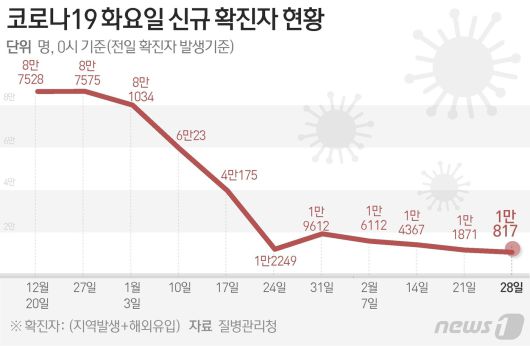 (서울=뉴스1) 윤주희 디자이너 = 질병관리청 중앙방역대책본부(방대본)는 28일 0시 기준 신종 코로나바이러스 감염증(코로나19) 신규 확진자가 1만817명 발생했다고 밝혔다.ajsj999@news1.krCopyright ⓒ 뉴스1. All rights reserved. 무단 전재 및 재배포 금지.
