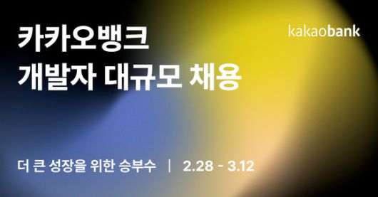 [디지털데일리 이상일기자]카카오뱅크(대표이사 윤호영)는 경력 개발자를 대상으로 대규모 채용을 실시한다고 28일 밝혔다.