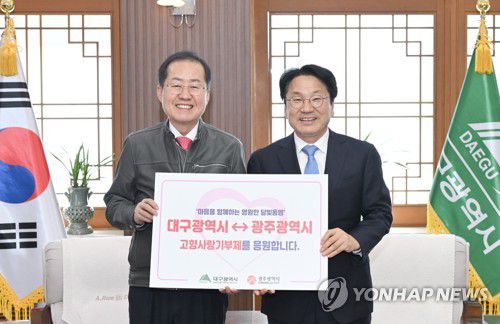 고향사랑기부금 상호 기부하는 홍준표·강기정 시장 |