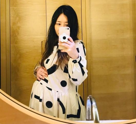 이어 "아직 더 체중이 늘텐데 곧 앞자리가 3번째 바뀔 듯"이라는 글과 함께 만삭 사진을 공개했다.