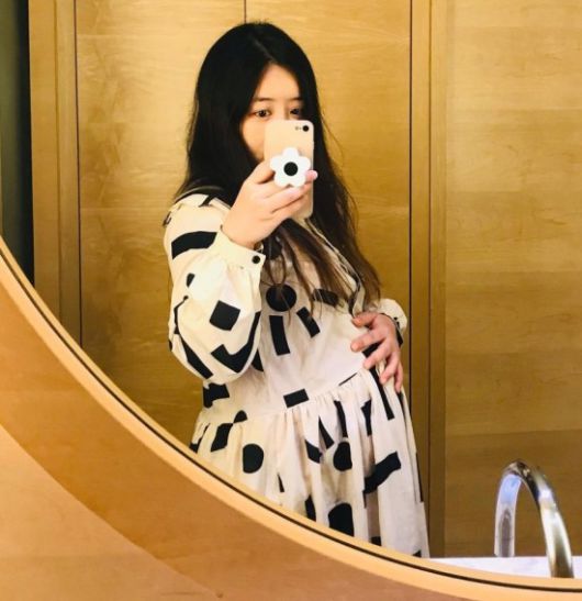 공개된 사진 속 베니는 만삭으로 부른 배를 소중하게 감싸고 인증샷을 남기며 팬들에게 인사를 전하고 있는 모습이다.