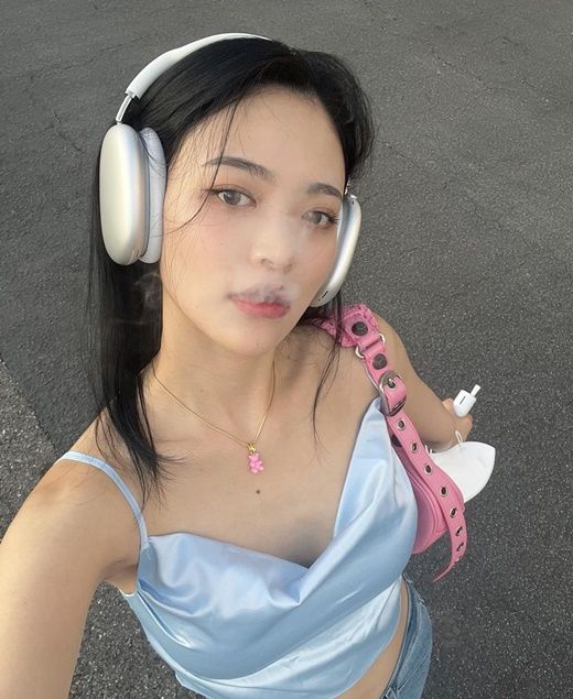 이 사진에서 특히 눈길을 끈 부분은 솜이가 한 손에 전자담배를 들고 입으로는 연기를 내뿜고 있는 모습이었다.