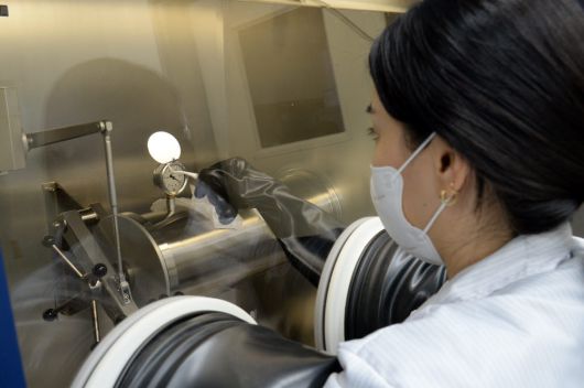 ETRI 연구진이 공정을 마친 전계흡수변조형 광원소자 및 광모듈 공정 결과를 분석하는 모습. |