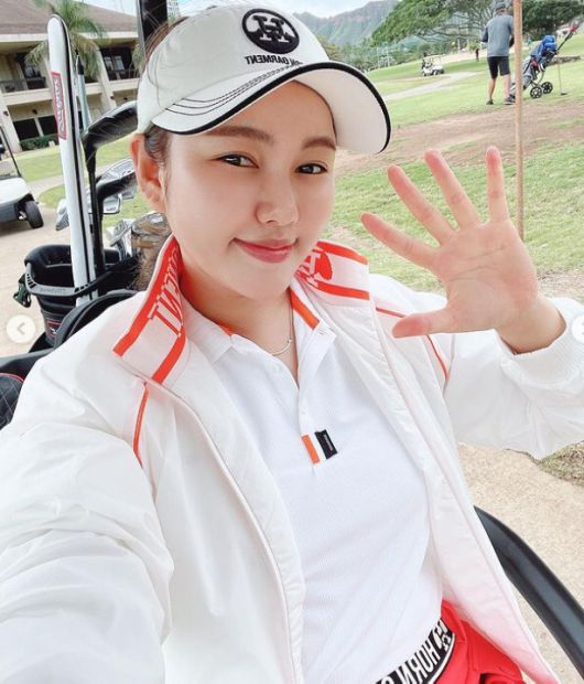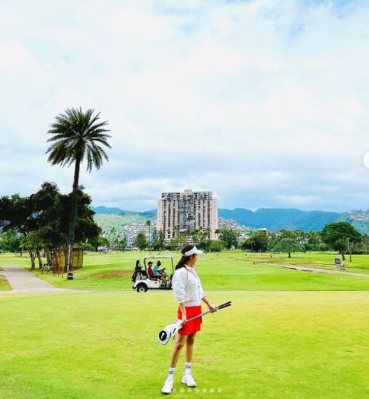 사진은 송가인이 하와이 골프장에서 여유로운 시간을 보내고 있는 모습을 담고 있다. 그림같이 펼쳐진 하와이 골프장을 배경으로 한 채 포즈를 취하고 있다.