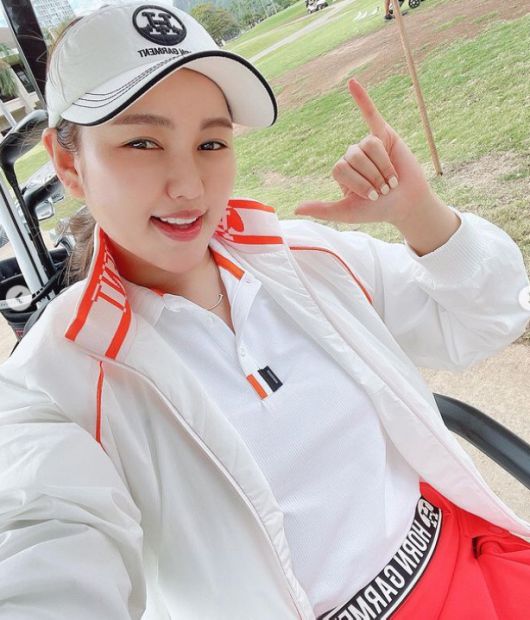 송가인은 화이트와 레드 색상이 조화로운 골프웨어를 입고 상큼함을 발산하고 있다. 특히 키 153cm임에도 완벽한 비율을 보여주고 있어 눈길을 사로잡는다.