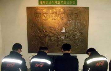 서울 은평소방서에 세워진 홍제동 방화 사건 순직 소방관 추모 동판. 사진=뉴시스. |