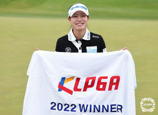 KLPGA 우승 수건을 들고 있는 박민지. |