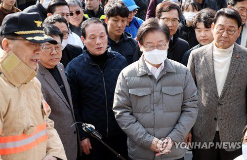이 대표는 화재현장에서 '본인의 사퇴 청원 글이 올라온 데 대해 어떻게 생각하느냐'는 취재진 질문에 "화재 피해에 좀 더 관심을 가져주세요"라고만 답했다.