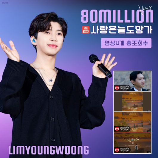 지난 5일 기준 임영웅의 '사랑은 늘 도망가' 뮤직비디오와 공식 오디오 영상, 가사 영상, 음원 영상 총조회수가 8000만 뷰를 돌파했다.