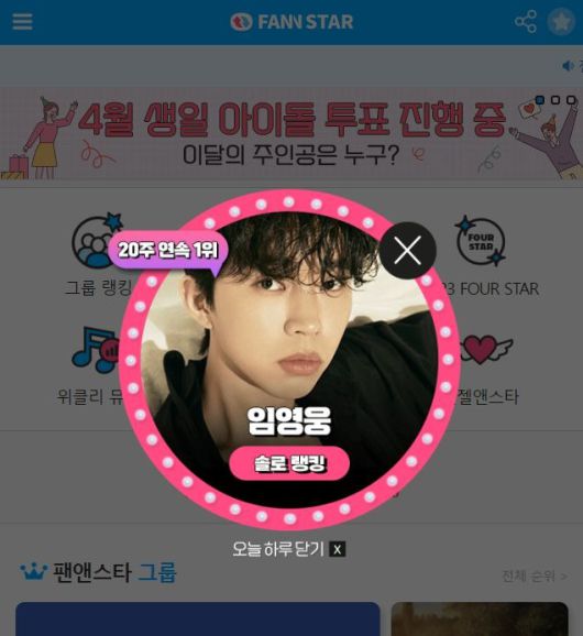 '팬앤스타' 3월 첫째 주 솔로 랭킹 투표에서 2492만 5568표 득표