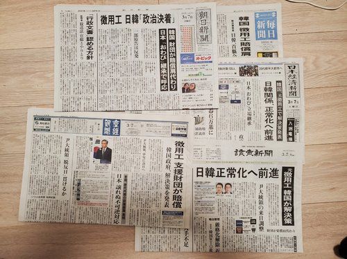 도쿄신문은 이날 사설을 통해 전날 발표한 한국의 징용 해법에 대해 "(징용 배상 소송의) 원고와 한국 여론의 반발이 강해 일본 측의 기여가 없으면 실현되기 어렵다"며 "한일관계 개선을 위해서는 일본 정부와 피고 기업의 적극적 협력이 필수적"이라고 강조했다.