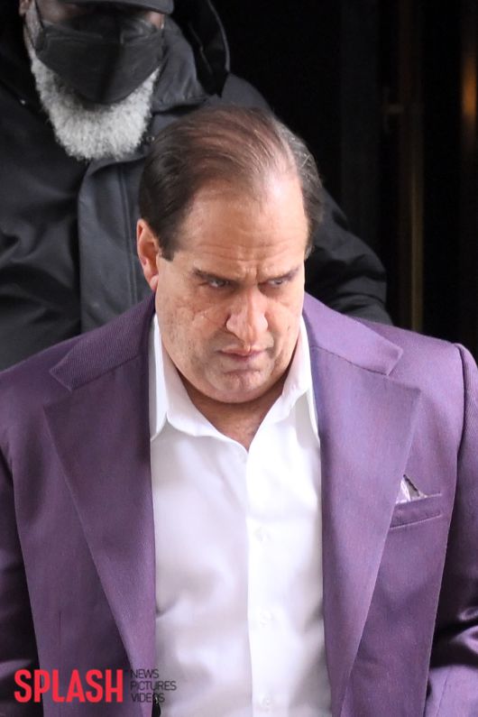 사진 보라색 슈트를 입은 그는 분장으로 숱이 적어진 머리와 부풀어 오른 체구를 얻었다. 원래 모습을 상상할 수 없는 파격적인 분장이 놀라움을 자아낸다.