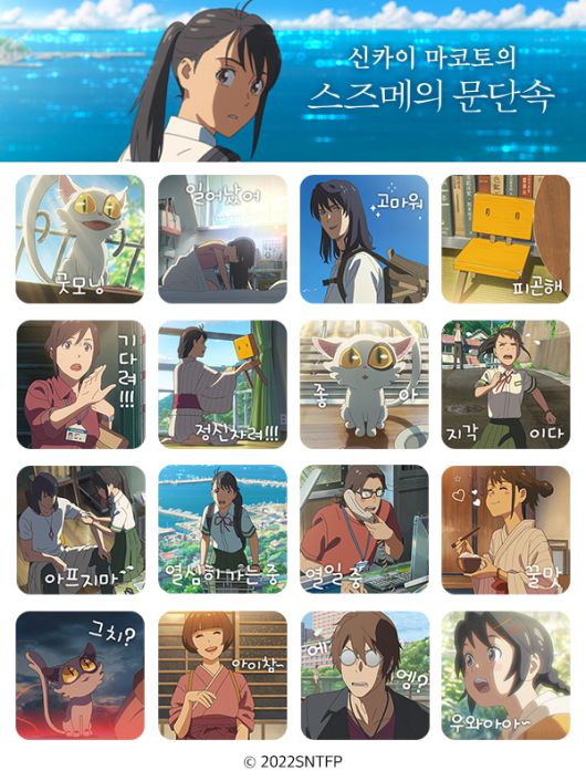 수입사 미디어캐슬은 7일 "'스즈메의 문단속'은 8일 개봉에 맞춰 카카오톡 이모티콘을 출시한다"고 밝혔다.