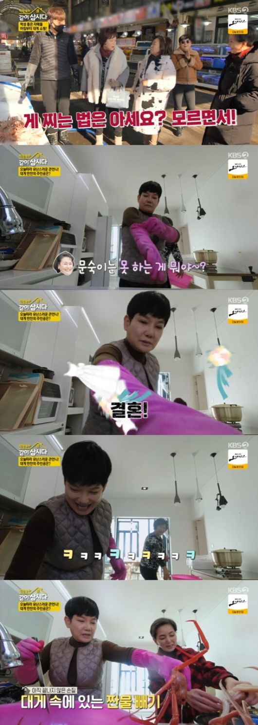 (서울=뉴스1) 박하나 기자 = 배우 안문숙이 '박원숙의 같이 삽시다 시즌3'에서 대게 손질까지 거침없이 하는 모습으로 눈길을 끌었다.