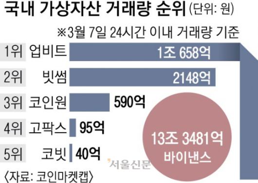 바이낸스의 진출이 본격화될 경우 두나무가 운영 중인 업비트의 독주가 변화할 가능성도 있다. 바이낸스에 상장된 암호화폐가 350여종으로 업비트의 두 배 수준에 이르기 때문에 투자자의 선택폭이 넓어질 수 있어서다. 업계 관계자는 “글로벌 1위 거래소인 만큼 시장에 미칠 영향이 적지 않을 것으로 보인다”고 말했다.