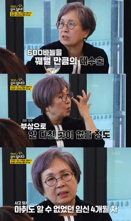 배우 오미연이 교통사고로 마취 없이 대수술을 받은 기억을 털어놨다.