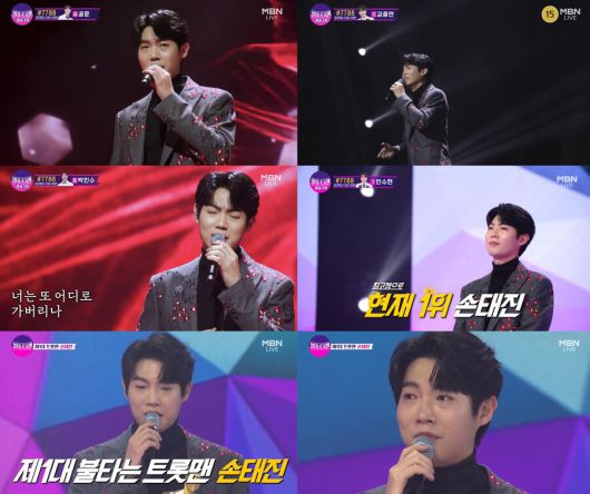 이날 손태진은 인생곡 미션에서 남진의 '상사화'를 선곡, 부모님을 향한 그리운 마음을 특유의 묵직한 저음으로 표현했다. 한층 담백해진 트로트 창법과 애절한 표정 연기로 호소력 짙은 무대를 완성, 손태진만의 섬세한 완급 조절이 돋보였다.