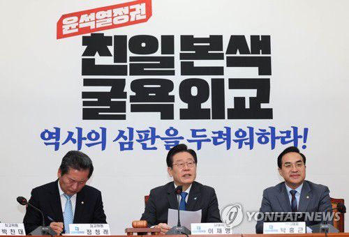 (서울=연합뉴스) 한주홍 정윤주 기자 = 더불어민주당은 8일에도 '제3자 변제'를 골자로 하는 정부의 일제 강제징용 피해배상 해법을 고리로 윤석열 대통령과 정부에 십자포화를 퍼부었다.