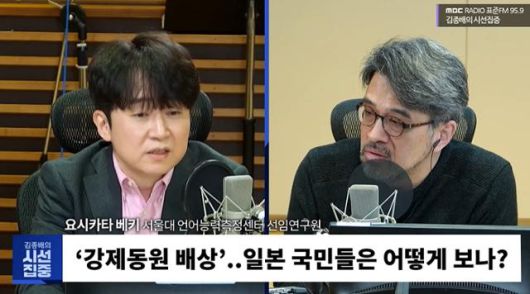 20년 넘게 한국에서 거주하고 있는 일본인 요시카타 베키 서울대 언어능력측정센터 선임연구원은 8일 MBC라디오 '김종배의 시선집중'에서 강제동원 피해자 배상 해법에 대한 일본 국민들의 시각을 묻는 질문에 "이번에는 뭔가 의미가 있는 결정이 나오는 건가 그런 정도"라며 이같이 답했다.