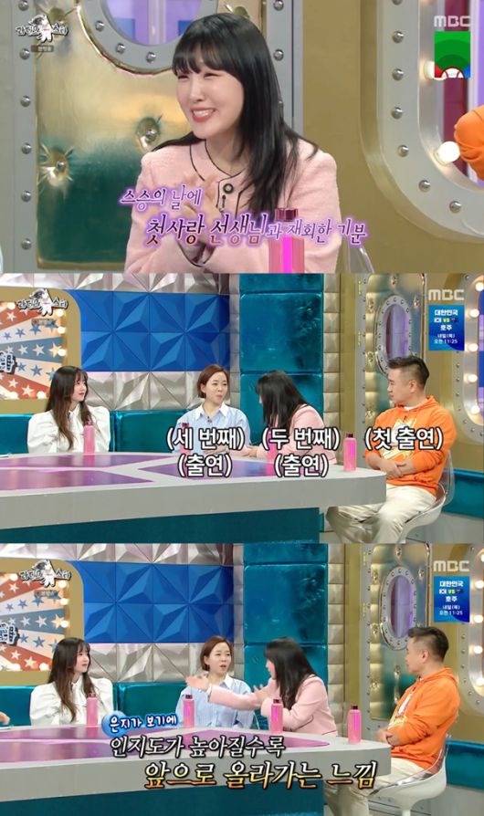 이은지는 "저는 스승의 날 첫사랑 선생님 다시 만나러 온 느낌이다. 그런 두근두근한 마음이 있다"고 밝혔다.