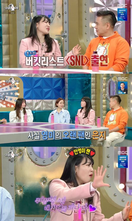 이날 MC 안영미는 이은지에게 "오늘 '라스'를 찾아온 느낌이 남다르다고 하더라"고 운을 뗐다.