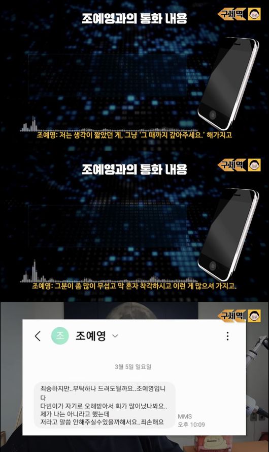 이에 구제역은 "저는 조예영이라고 밝힐 생각이 없었다. 근데 조예영이 이렇게 행동하면 추가 피해를 방지하기 위해 채무불이행자가 조예영이라는 것을 밝힐 수 밖에 없다. 조예영이 다른 출연자한테까지 자신이 돈 빌려달라고 한 적이 없다고 했다. 실제로 그 이후로 전다빈도 자신의 SNS에 본인이 아니라고 밝혔고, 남은 2명이 범인이 되는 것이다. 이 둘다 자신들이 범인이 아니라고 하면 제가 '돌싱글즈3' 출연진들을 허위제보를 한 게 되는 아이러니한 상황"이라고 실명을 공개한 이유를 설명했다.