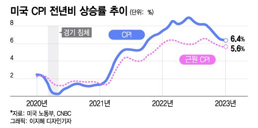 골드만삭스는 지난 5일 보고서에서 소비자 지출이 예상보다 높은 수준을 유지하고 있어 연준이 금리를 5.5~5.75%까지 올릴 수 있다고 밝혔다. 금리를 0.25%포인트씩 오는 9월까지 계속 인상할 것이란 전망이다.