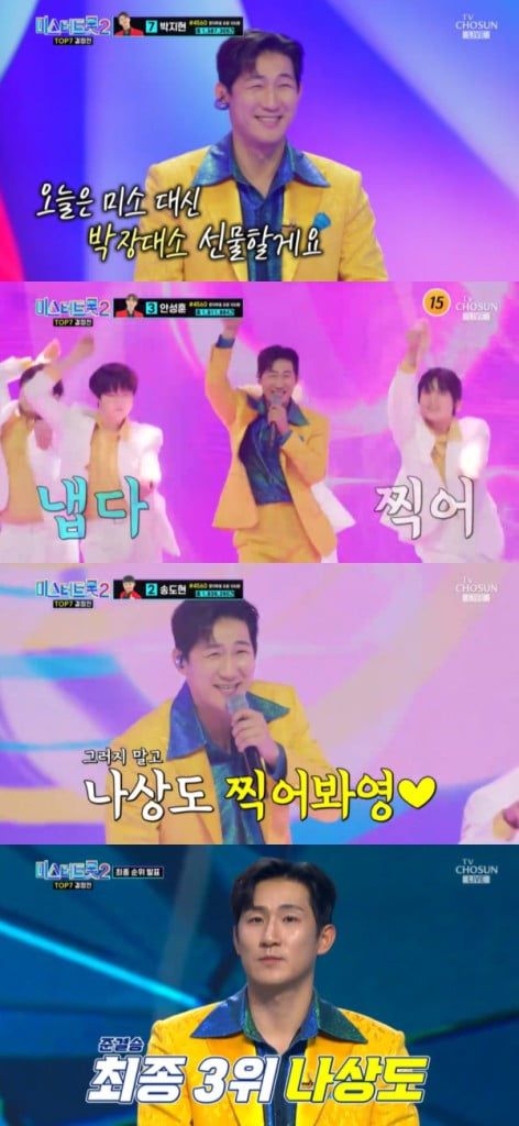 한편, 나상도는 ‘미스터트롯2’ 결승진출에 성공했으며, ‘미스터트롯2’ 결승전 생방송은 오는 16일 밤 9시 30분에 TV조선에서 방송된다.