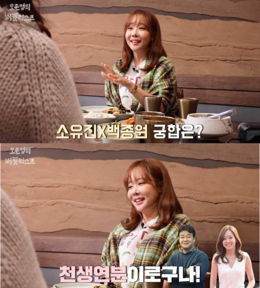 10일, 오은영은 자신의 유튜브 채널 '오은영의 버킷리스트'에 '[소유진♥백종원] 첫 만남에 사주를 빼갔다고? 초고속 결혼! 쉿! 비하인드 스토리 공개!!!'라는 제목의 영상을 업로드 했다.